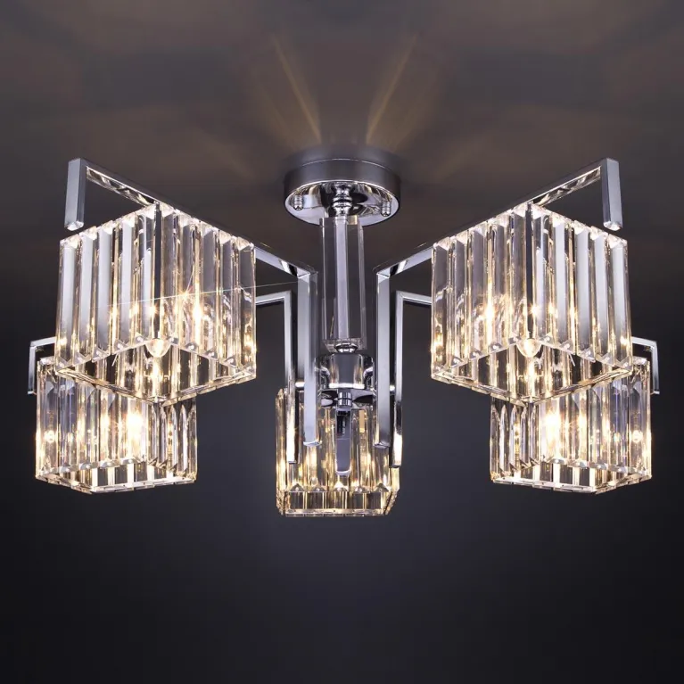 Люстра оснащена пятью лампами, что обеспечивает яркое и равномерное освещение пространства. Она идеально подходит для гостиной, столовой или спальни, создавая уютную и комфортную атмосферу. Основание выполнено из прочного металла с хромированным покрытием, который придает изделию современный и стильный вид.