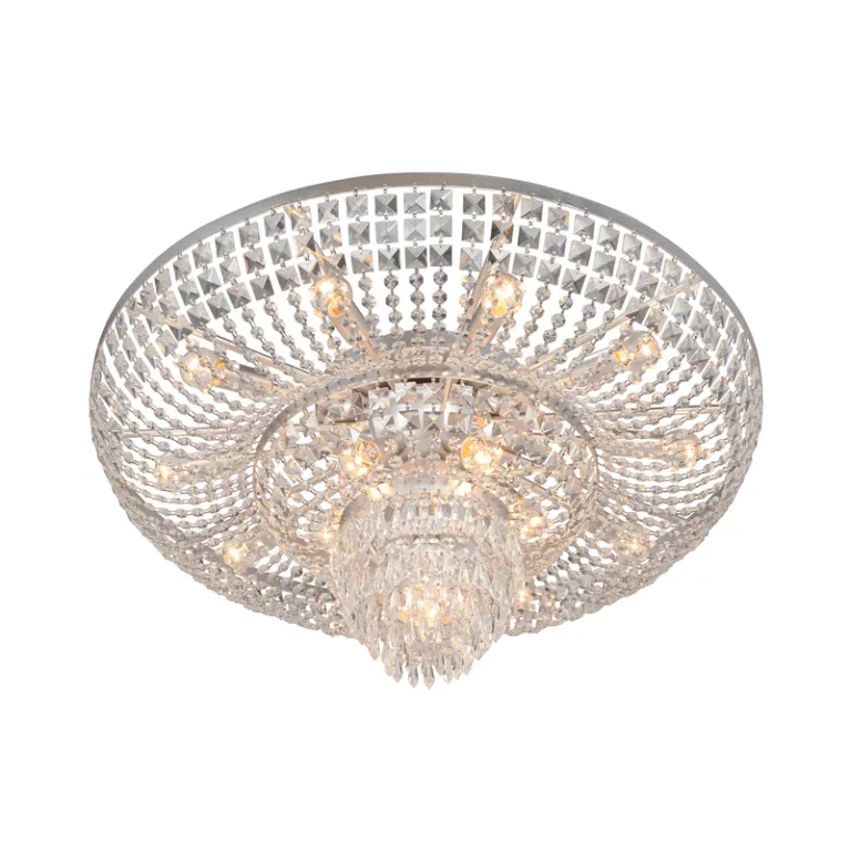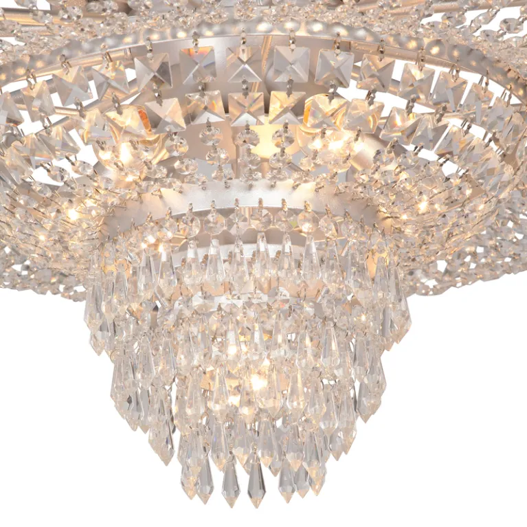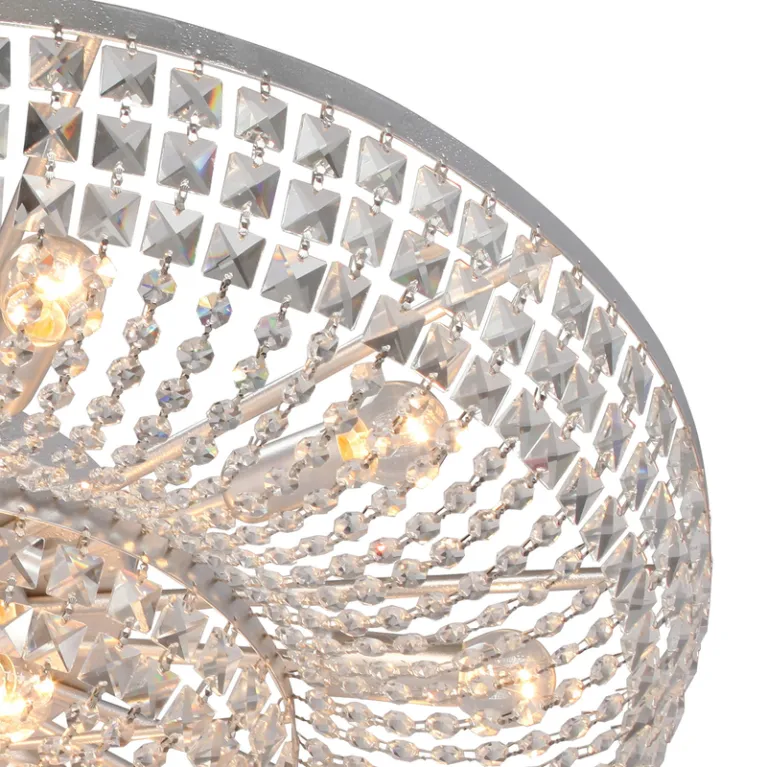 Преобладающий цвет плафонов: Прозрачный, арматуры: Хром; материал изготовления арматуры: Металл, размеры, мм: / высота 365 / диаметр 765. Общая мощность – 640 Ватт, а максимальная площадь освещения до 48 м2. Основной тип ламп, предусмотренный производителем: Накаливания с цоколем E14. В зависимости от предпочтений можно использовать лампы теплового, холодного или нейтрального света, за исключением люстр с типом цоколя LED.