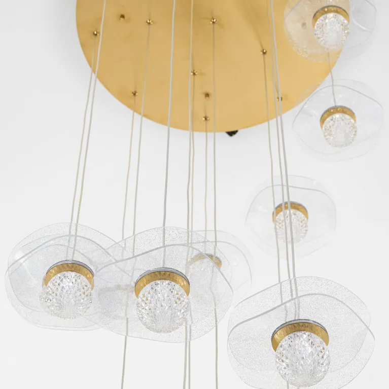 Преобладающий цвет плафонов: Прозрачный, арматуры: Бронза; материал изготовления арматуры: Металл, размеры, мм: / высота 3600 / диаметр 720. Общая мощность – 72 Ватт, а максимальная площадь освещения до 21 м2. Основной тип ламп, предусмотренный производителем: Светодиодная с цоколем LED. В зависимости от предпочтений можно использовать лампы теплового, холодного или нейтрального света, за исключением люстр с типом цоколя LED.
