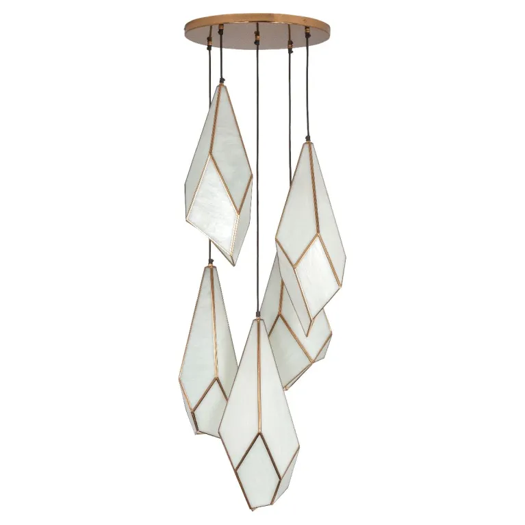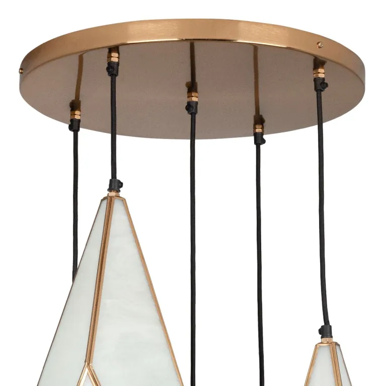 Преобладающий цвет плафонов: Белый, арматуры: Латунь; материал изготовления арматуры: Металл, размеры, мм: длина 440 / ширина 440 / высота 2200 Общая мощность – 200 Ватт. Основной тип ламп, предусмотренный производителем: Накаливания с цоколем E27. В зависимости от предпочтений можно использовать лампы теплового, холодного или нейтрального света, за исключением люстр с типом цоколя LED.