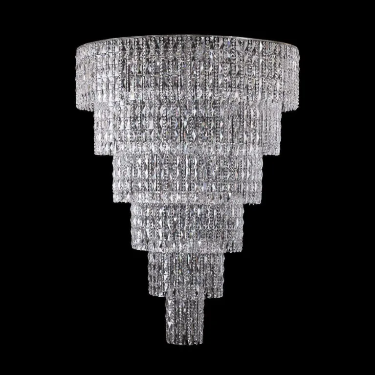 Люстра оснащена восемью рожками, в каждый из которых можно установить лампу, что обеспечивает яркое и равномерное освещение. Хрусталь высочайшего качества придает светильнику неповторимый блеск и утонченность, делая его настоящим произведением искусства.