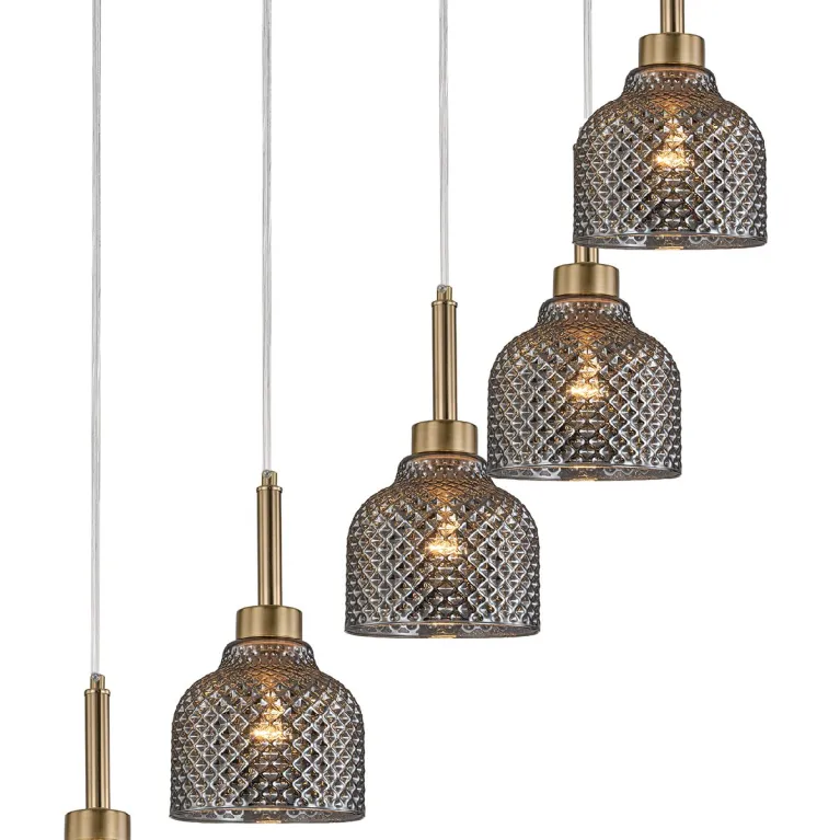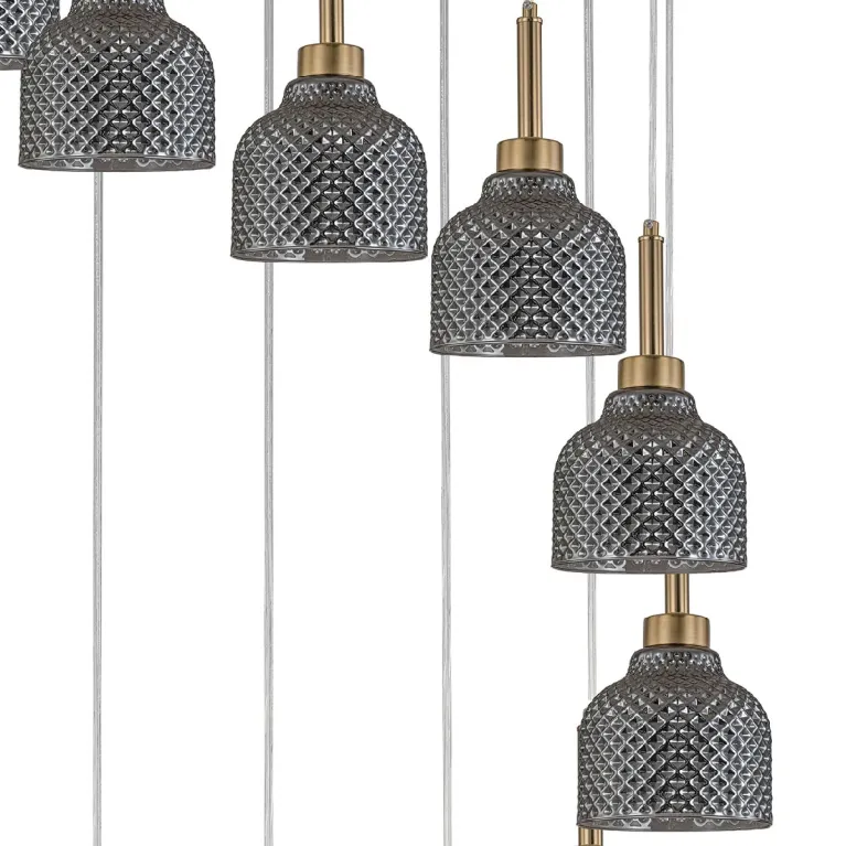 Преобладающий цвет плафонов: Янтарный, арматуры: Бронза; материал изготовления арматуры: Металл, размеры, мм: / высота 3695 / диаметр 700. Общая мощность – 480 Ватт, а максимальная площадь освещения до 24 м2. Основной тип ламп, предусмотренный производителем: Накаливания с цоколем E27. В зависимости от предпочтений можно использовать лампы теплового, холодного или нейтрального света, за исключением люстр с типом цоколя LED.