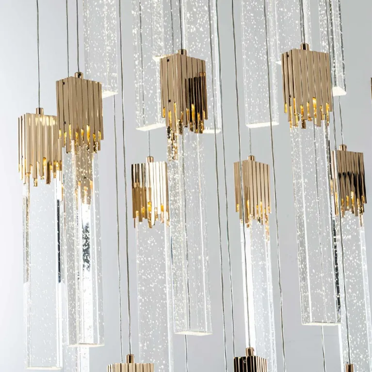 Преобладающий цвет плафонов: Прозрачный, арматуры: Золото; материал изготовления арматуры: Металл, размеры, мм: / высота 3000 / диаметр 600. Общая мощность – 160 Ватт, а максимальная площадь освещения до 20 м2. Основной тип ламп, предусмотренный производителем: Светодиодная с цоколем LED. В зависимости от предпочтений можно использовать лампы теплового, холодного или нейтрального света, за исключением люстр с типом цоколя LED.