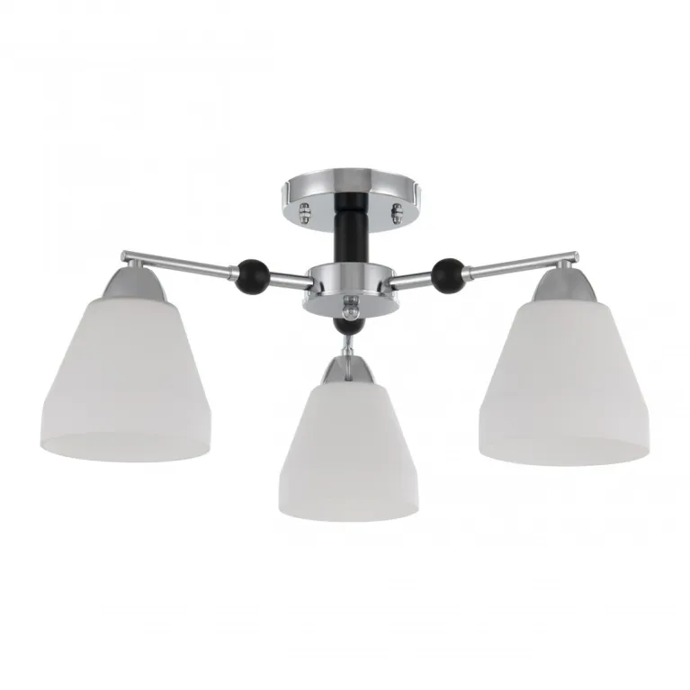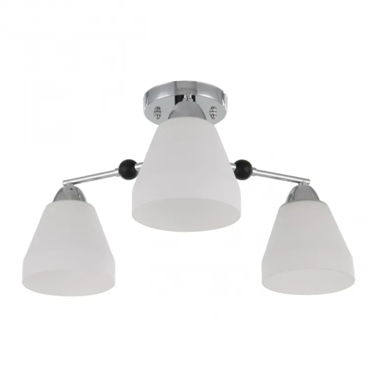 Преобладающий цвет плафонов: Белый, арматуры: Хром; материал изготовления арматуры: Металл, размеры, мм: / высота 250 / диаметр 500. Общая мощность – 120 Ватт, а максимальная площадь освещения до 6 м2. Основной тип ламп, предусмотренный производителем: Накаливания с цоколем E27. В зависимости от предпочтений можно использовать лампы теплового, холодного или нейтрального света, за исключением люстр с типом цоколя LED.
