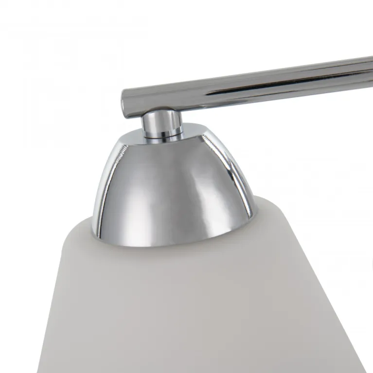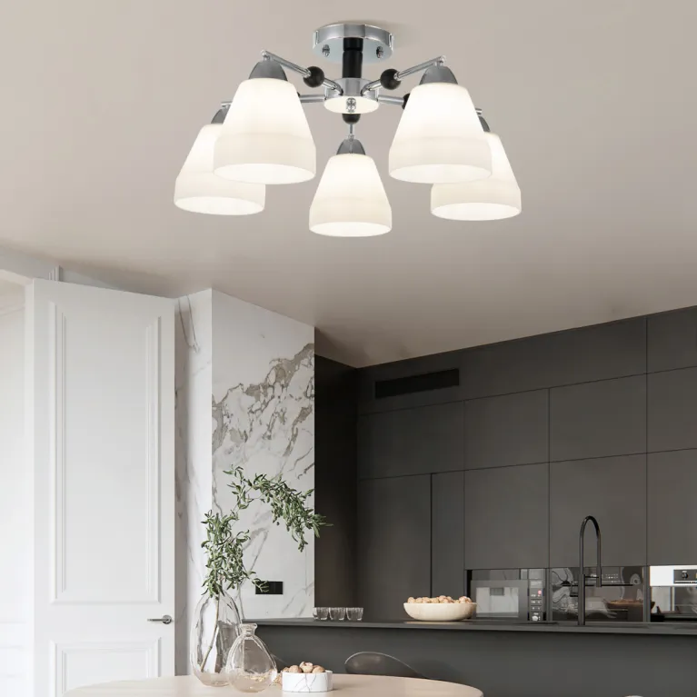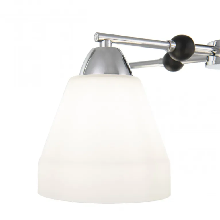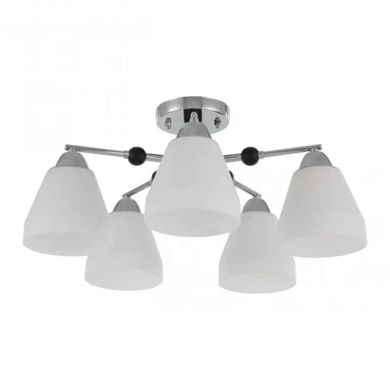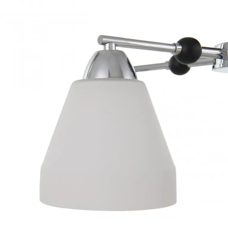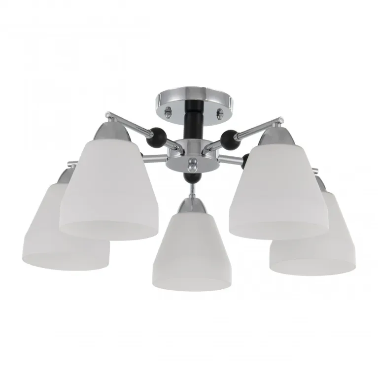 Преобладающий цвет плафонов: Белый, арматуры: Хром; материал изготовления арматуры: Металл, размеры, мм: / высота 250 / диаметр 500. Общая мощность – 200 Ватт, а максимальная площадь освещения до 10 м2. Основной тип ламп, предусмотренный производителем: Накаливания с цоколем E27. В зависимости от предпочтений можно использовать лампы теплового, холодного или нейтрального света, за исключением люстр с типом цоколя LED.
