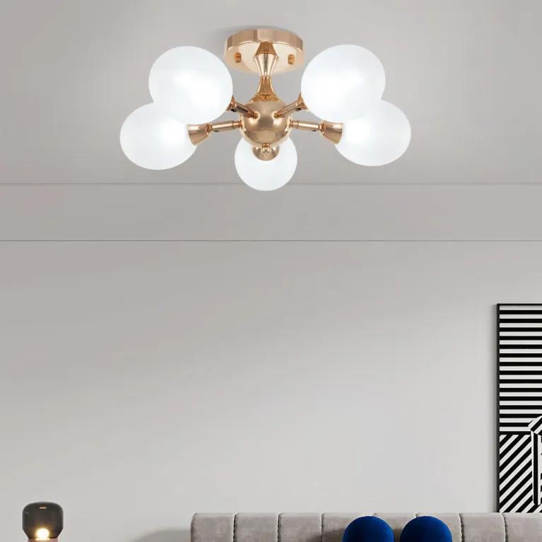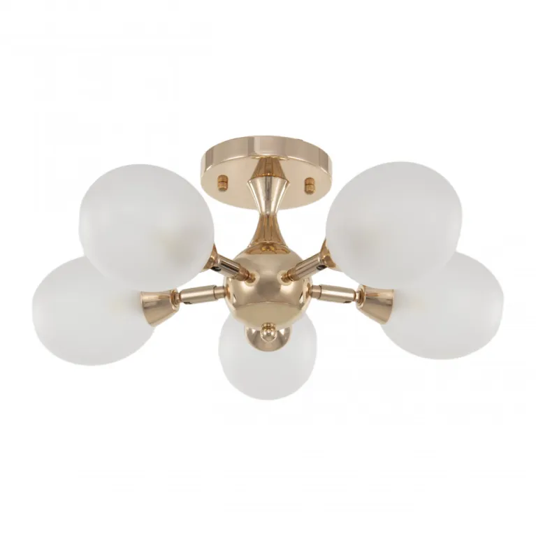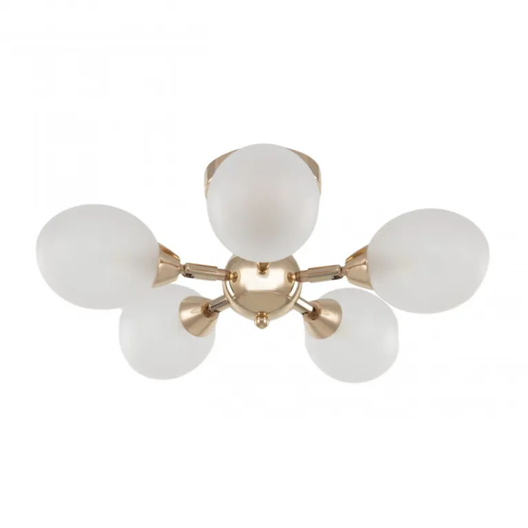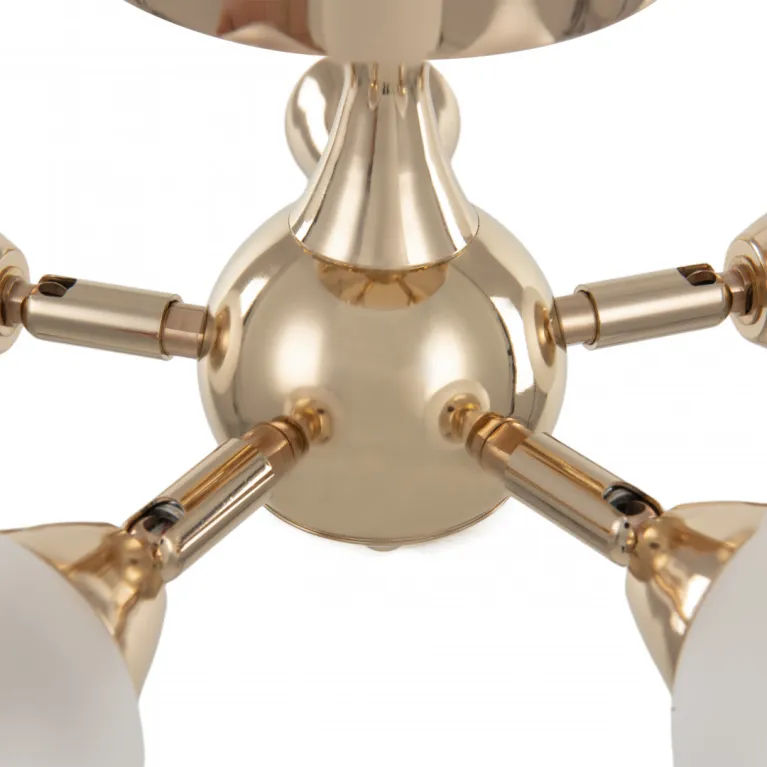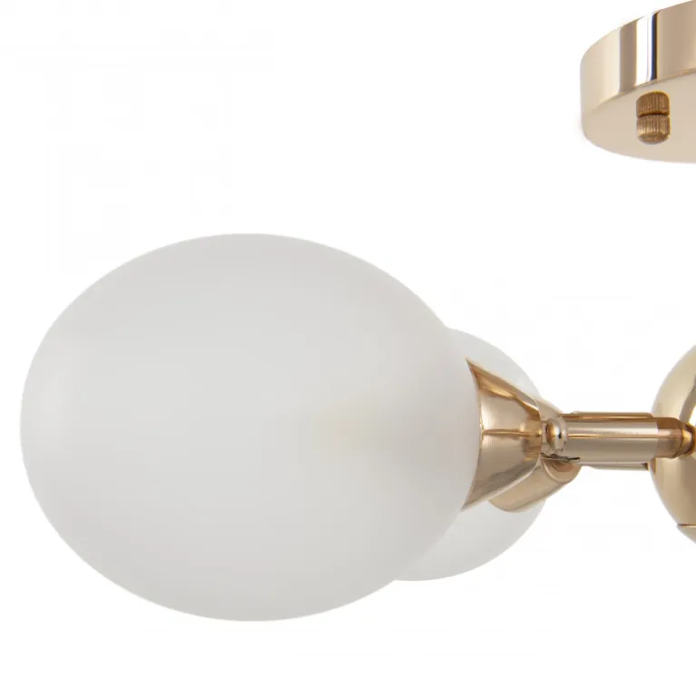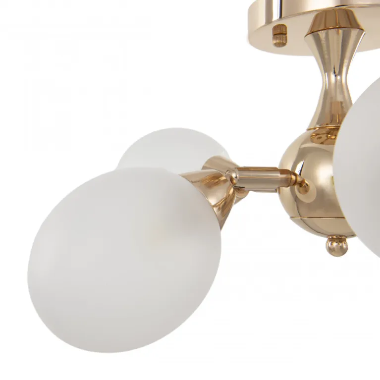 Преобладающий цвет плафонов: Белый, арматуры: Золото; материал изготовления арматуры: Металл, размеры, мм: / высота 170 / диаметр 460. Общая мощность – 200 Ватт. Основной тип ламп, предусмотренный производителем: Галогеновая с цоколем G9. В зависимости от предпочтений можно использовать лампы теплового, холодного или нейтрального света, за исключением люстр с типом цоколя LED.