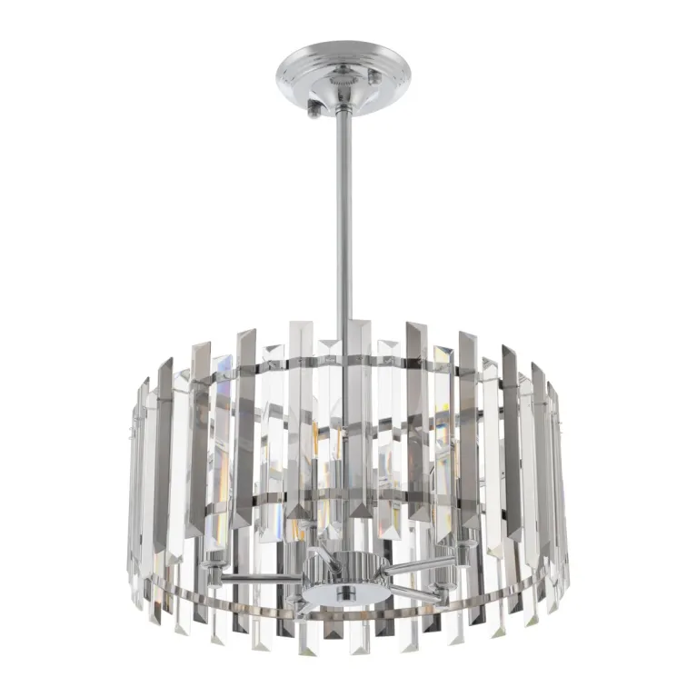 Преобладающий цвет плафонов: Дымчатый, арматуры: Хром; материал изготовления арматуры: Металл, размеры, мм: / высота 570 / диаметр 410. Общая мощность – 200 Ватт. Основной тип ламп, предусмотренный производителем: Накаливания с цоколем E14. В зависимости от предпочтений можно использовать лампы теплового, холодного или нейтрального света, за исключением люстр с типом цоколя LED.
