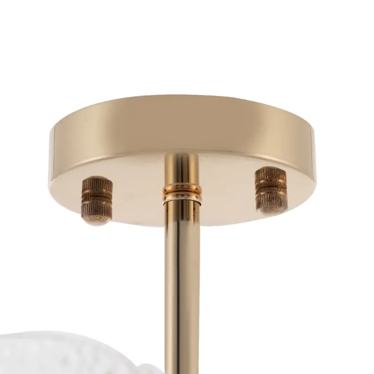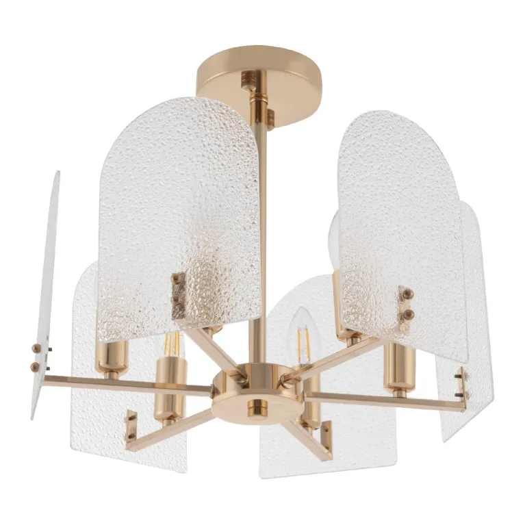 Преобладающий цвет плафонов: Прозрачный, арматуры: Золото; материал изготовления арматуры: Металл, размеры, мм: / высота 350 / диаметр 390. Общая мощность – 240 Ватт. Основной тип ламп, предусмотренный производителем: Накаливания с цоколем E14. В зависимости от предпочтений можно использовать лампы теплового, холодного или нейтрального света, за исключением люстр с типом цоколя LED.