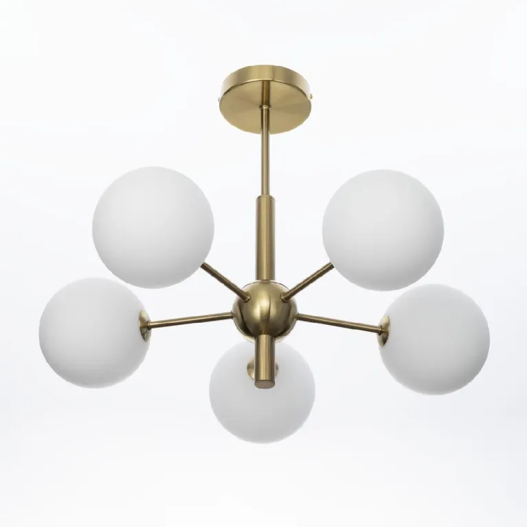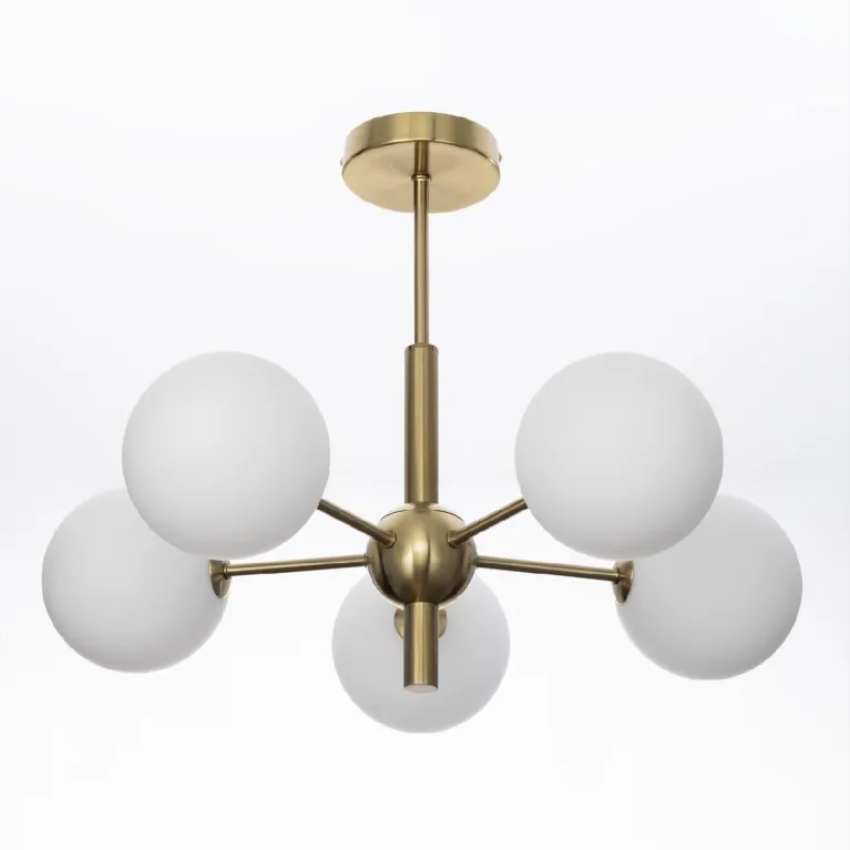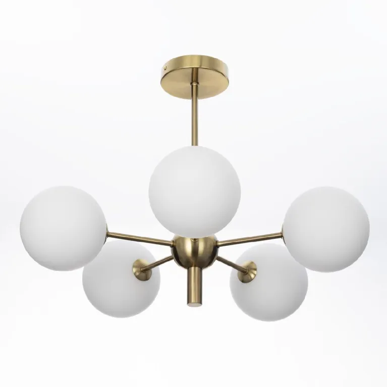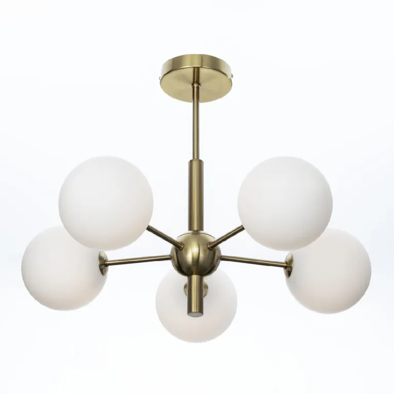 Преобладающий цвет плафонов: Белый, арматуры: Бронза; материал изготовления арматуры: Металл, размеры, мм: / высота 425 / диаметр 580. Общая мощность – 75 Ватт, а максимальная площадь освещения до 12 м2. Основной тип ламп, предусмотренный производителем: Светодиодная с цоколем G9. В зависимости от предпочтений можно использовать лампы теплового, холодного или нейтрального света, за исключением люстр с типом цоколя LED.