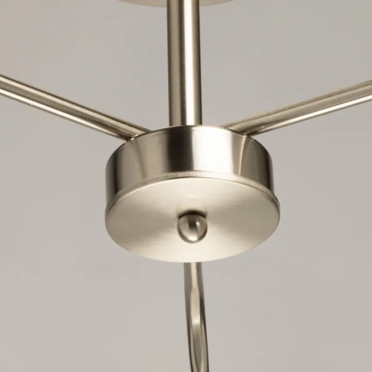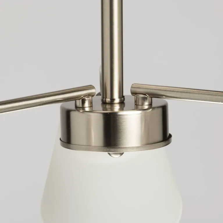 Преобладающий цвет плафонов: Белый, арматуры: Никель; материал изготовления арматуры: Металл, размеры, мм: / высота 300 / диаметр 600. Общая мощность – 180 Ватт, а максимальная площадь освещения до 9 м2. Основной тип ламп, предусмотренный производителем: Накаливания с цоколем E27. В зависимости от предпочтений можно использовать лампы теплового, холодного или нейтрального света, за исключением люстр с типом цоколя LED.