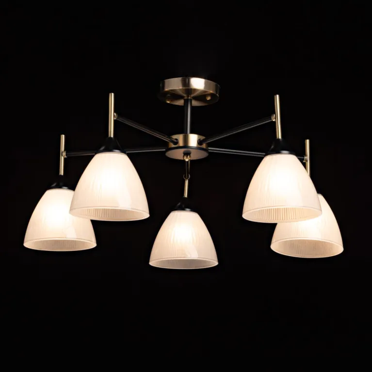Преобладающий цвет плафонов: Белый, арматуры: Черный; материал изготовления арматуры: Металл, размеры, мм: длина 630 / ширина 630 / высота 290 Общая мощность – 300 Ватт, а максимальная площадь освещения до 15 м2. Основной тип ламп, предусмотренный производителем: Накаливания с цоколем E27. В зависимости от предпочтений можно использовать лампы теплового, холодного или нейтрального света, за исключением люстр с типом цоколя LED.