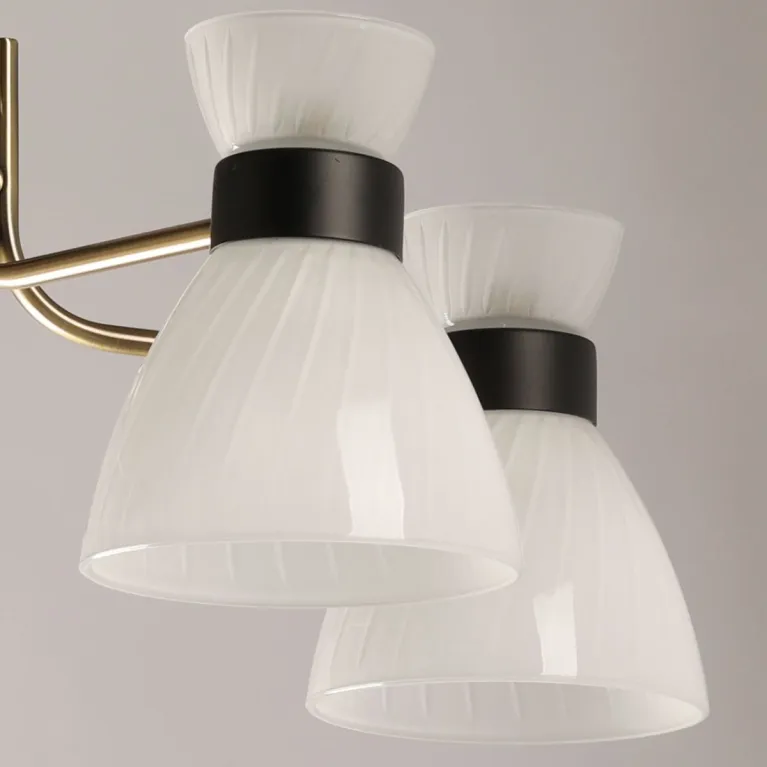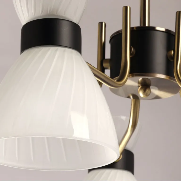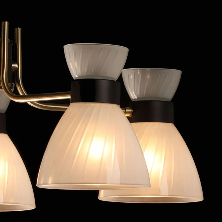 Преобладающий цвет плафонов: Белый, арматуры: Разноцветный; материал изготовления арматуры: Металл, размеры, мм: / высота 350 / диаметр 620. Общая мощность – 300 Ватт, а максимальная площадь освещения до 15 м2. Основной тип ламп, предусмотренный производителем: Накаливания с цоколем E27. В зависимости от предпочтений можно использовать лампы теплового, холодного или нейтрального света, за исключением люстр с типом цоколя LED.