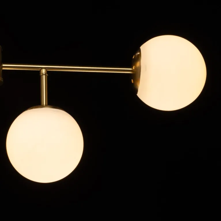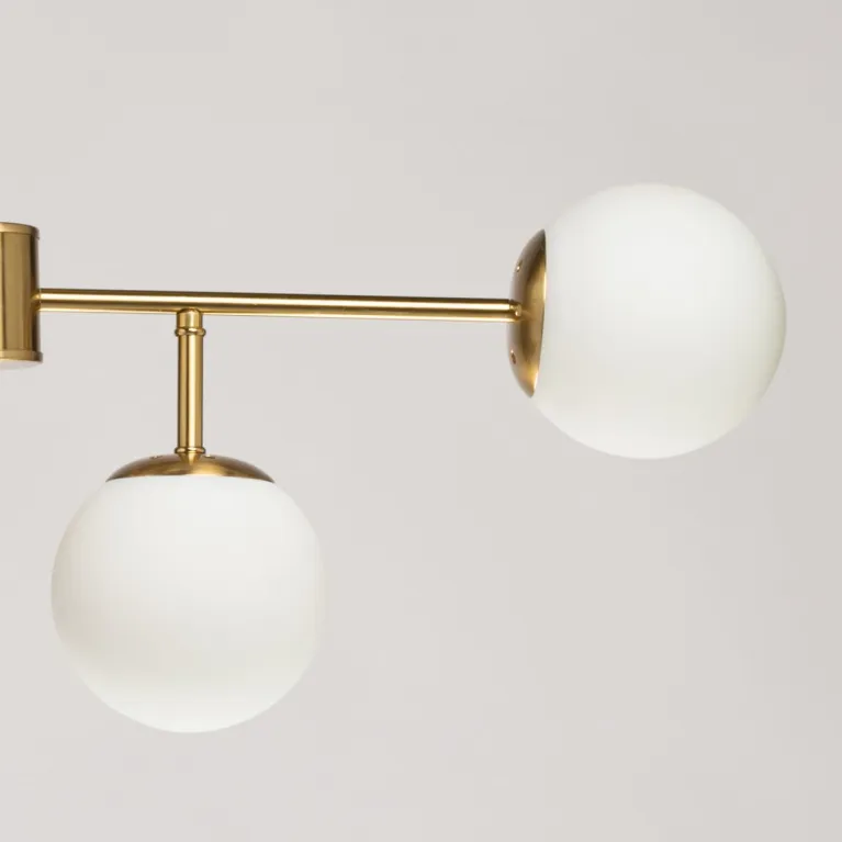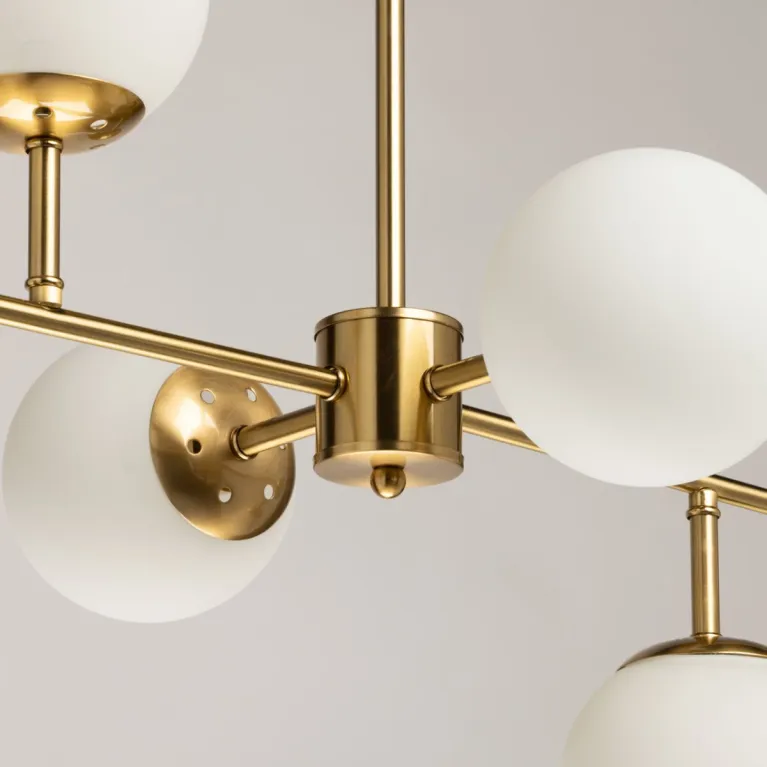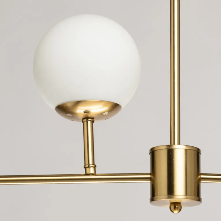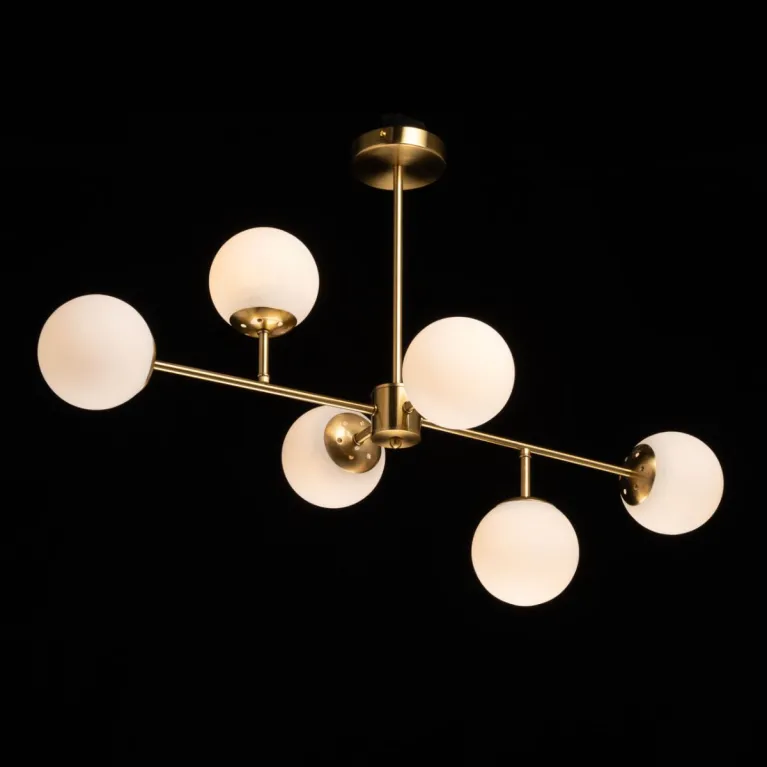 Преобладающий цвет плафонов: Белый, арматуры: Бронза; материал изготовления арматуры: Металл, размеры, мм: длина 900 / ширина 400 / высота 460 Общая мощность – 240 Ватт, а максимальная площадь освещения до 12 м2. Основной тип ламп, предусмотренный производителем: Накаливания с цоколем E27. В зависимости от предпочтений можно использовать лампы теплового, холодного или нейтрального света, за исключением люстр с типом цоколя LED.