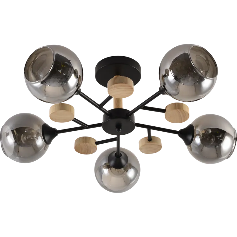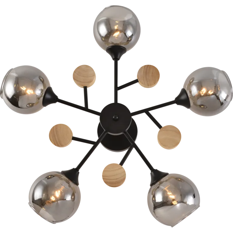 Преобладающий цвет плафонов: Дымчатый, арматуры: Черный; материал изготовления арматуры: Металл, размеры, мм: / высота 220 / диаметр 610. Общая мощность – 300 Ватт, а максимальная площадь освещения до 15 м2. Основной тип ламп, предусмотренный производителем: Накаливания с цоколем E27. В зависимости от предпочтений можно использовать лампы теплового, холодного или нейтрального света, за исключением люстр с типом цоколя LED.