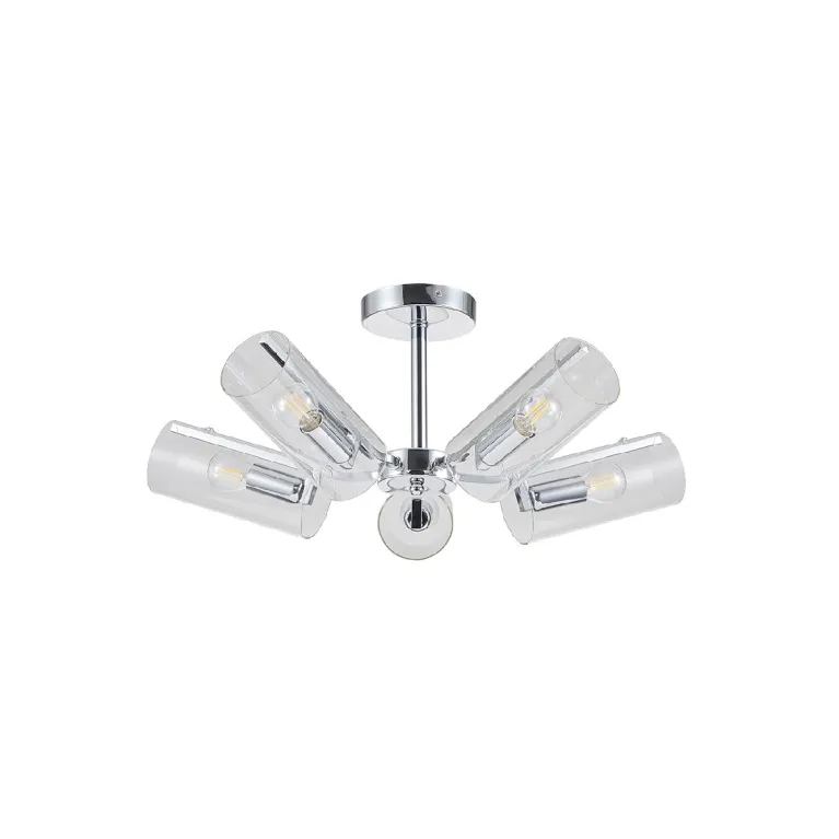 Преобладающий цвет плафонов: Прозрачный, арматуры: Хром; материал изготовления арматуры: Металл, размеры, мм: / высота 250 / диаметр 585. Общая мощность – 200 Ватт, а максимальная площадь освещения до 10 м2. Основной тип ламп, предусмотренный производителем: Накаливания с цоколем E14. В зависимости от предпочтений можно использовать лампы теплового, холодного или нейтрального света, за исключением люстр с типом цоколя LED.
