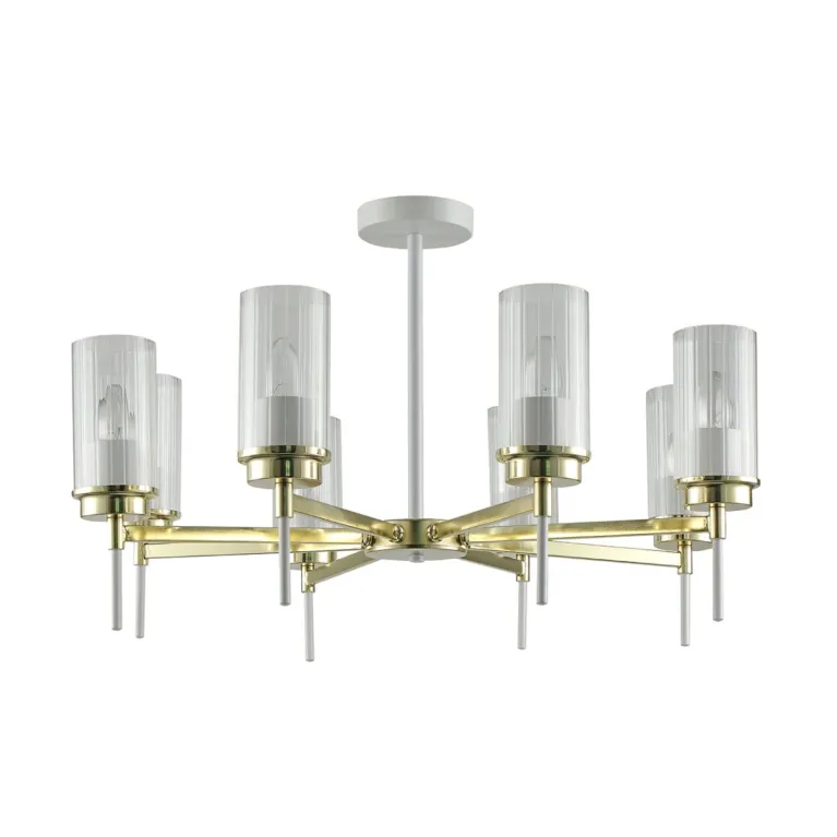 Преобладающий цвет плафонов: Прозрачный, арматуры: Разноцветный; материал изготовления арматуры: Металл, размеры, мм: / высота 430 / диаметр 700. Общая мощность – 320 Ватт, а максимальная площадь освещения до 20 м2. Основной тип ламп, предусмотренный производителем: Накаливания с цоколем E14. В зависимости от предпочтений можно использовать лампы теплового, холодного или нейтрального света, за исключением люстр с типом цоколя LED.