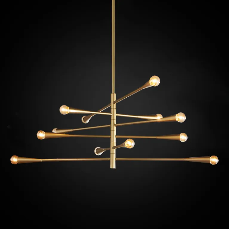 Преобладающий цвет плафонов: Латунь, арматуры: Латунь; материал изготовления арматуры: Металл, размеры, мм: / высота 400 / диаметр 1160. Общая мощность – 480 Ватт. Основной тип ламп, предусмотренный производителем: Накаливания с цоколем E14. В зависимости от предпочтений можно использовать лампы теплового, холодного или нейтрального света, за исключением люстр с типом цоколя LED.