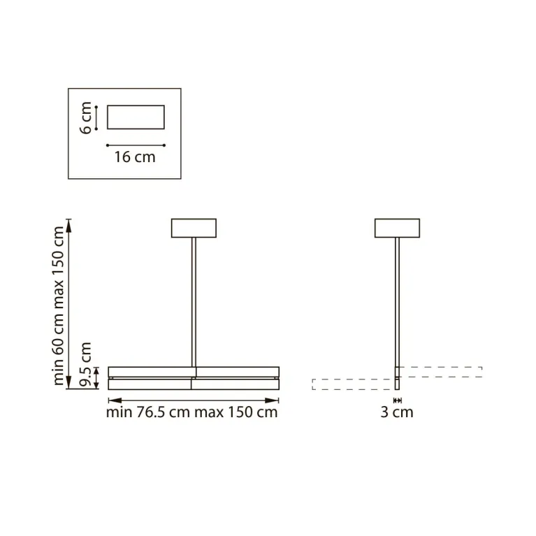 Преобладающий цвет плафонов: Черный, арматуры: Черный; материал изготовления арматуры: Металл, размеры, мм: длина 1500 / ширина 30 / высота 980 Общая мощность – 72 Ватт. Основной тип ламп, предусмотренный производителем: Светодиодная с цоколем LED. В зависимости от предпочтений можно использовать лампы теплового, холодного или нейтрального света, за исключением люстр с типом цоколя LED.