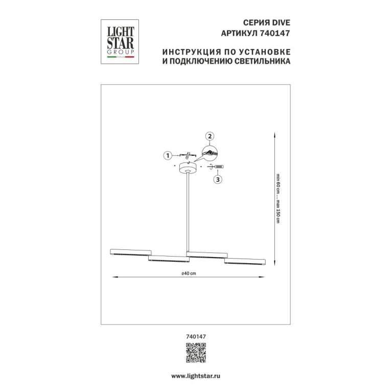 Артикул 740147 отвечает всем современным требованиям и стандартам качества, продукция сертифицирована. ✔ Гарантия от производителя. Цена люстры Lightstar Dive 740147 до 37 999 ₽(в магазине «Иллюзия Света» регулярно проходят скидки и акции, следите за обновлениями). Сведения о технических характеристиках, габаритах, внешнем виде и комплектации носят справочный характер, при возникновении вопросов обращайтесь к нашим менеджерам по телефонам ☎ +7(495)489-84-89 ☎ +7(800)707-70-34 или отправьте нам сообщение онлайн с помощью чата в углу экрана.