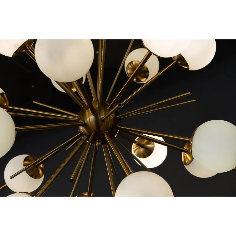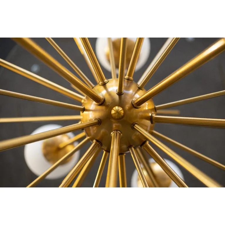 Преобладающий цвет плафонов: Белый, арматуры: Бронза; материал изготовления арматуры: Металл, размеры, мм: / высота 2000 / диаметр 1000. Общая мощность – 720 Ватт, а максимальная площадь освещения до 54 м2. Основной тип ламп, предусмотренный производителем: Галогеновая с цоколем G9. В зависимости от предпочтений можно использовать лампы теплового, холодного или нейтрального света, за исключением люстр с типом цоколя LED.