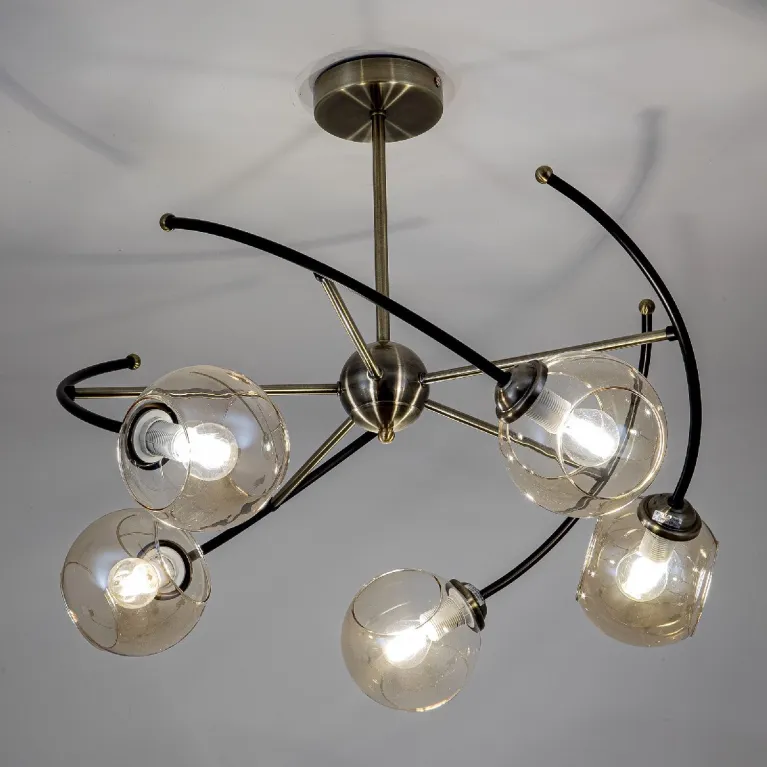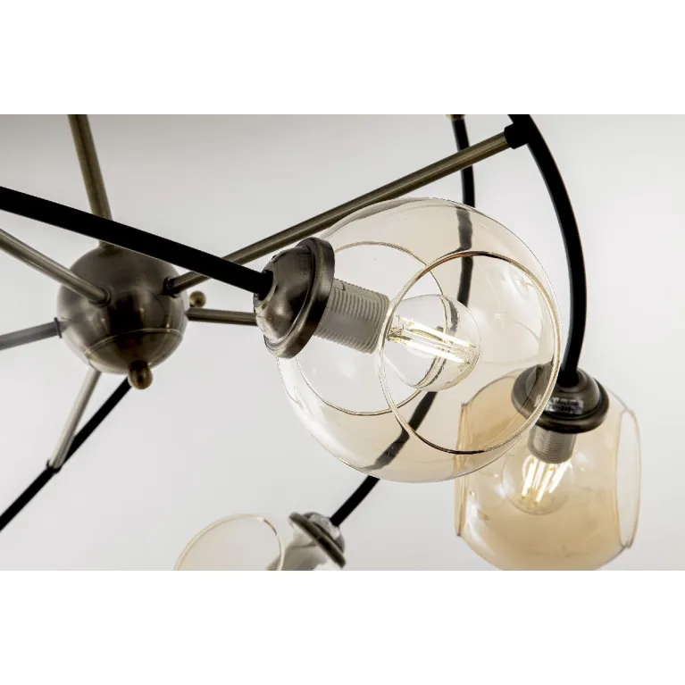 Преобладающий цвет плафонов: Прозрачный, арматуры: Бронза; материал изготовления арматуры: Металл, размеры, мм: / высота 400 / диаметр 680. Общая мощность – 200 Ватт, а максимальная площадь освещения до 12 м2. Основной тип ламп, предусмотренный производителем: Накаливания с цоколем E14. В зависимости от предпочтений можно использовать лампы теплового, холодного или нейтрального света, за исключением люстр с типом цоколя LED.