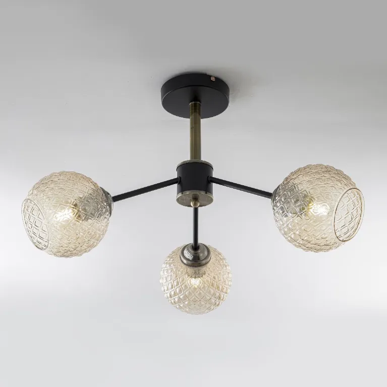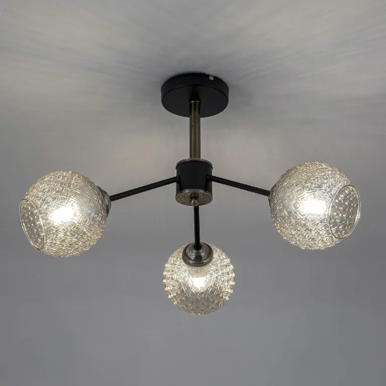 Преобладающий цвет плафонов: Прозрачный, арматуры: Черный; материал изготовления арматуры: Металл, размеры, мм: / высота 350 / диаметр 570. Общая мощность – 120 Ватт, а максимальная площадь освещения до 12 м2. Основной тип ламп, предусмотренный производителем: Накаливания с цоколем E27. В зависимости от предпочтений можно использовать лампы теплового, холодного или нейтрального света, за исключением люстр с типом цоколя LED.