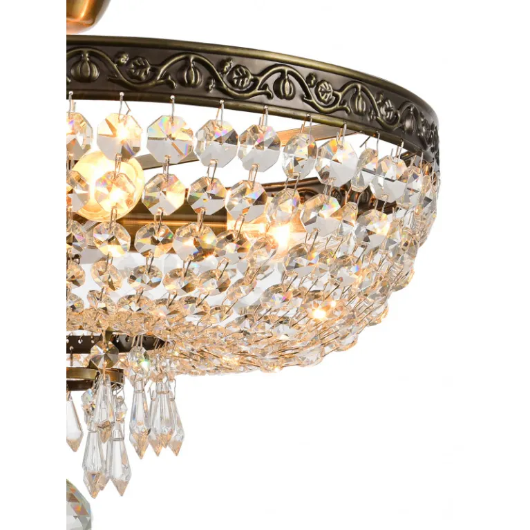 Преобладающий цвет плафонов: Прозрачный, арматуры: Бронза; материал изготовления арматуры: Металл, размеры, мм: длина 400 / ширина 400 / высота 360 Общая мощность – 160 Ватт, а максимальная площадь освещения до 12 м2. Основной тип ламп, предусмотренный производителем: Накаливания с цоколем E14. В зависимости от предпочтений можно использовать лампы теплового, холодного или нейтрального света, за исключением люстр с типом цоколя LED.