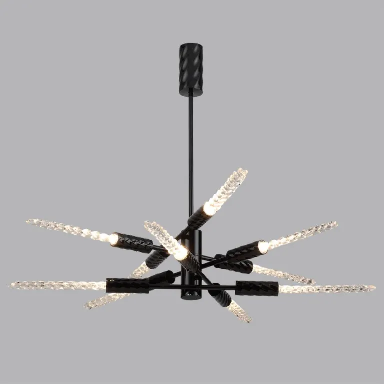 Преобладающий цвет плафонов: Прозрачный, арматуры: Черный; материал изготовления арматуры: Металл, размеры, мм: / высота 680 / диаметр 829. Общая мощность – 28 Ватт, а максимальная площадь освещения до 7 м2. Основной тип ламп, предусмотренный производителем: Светодиодная с цоколем LED. В зависимости от предпочтений можно использовать лампы теплового, холодного или нейтрального света, за исключением люстр с типом цоколя LED.