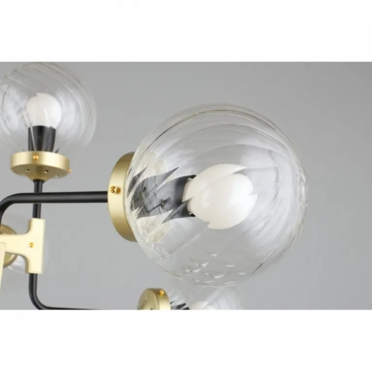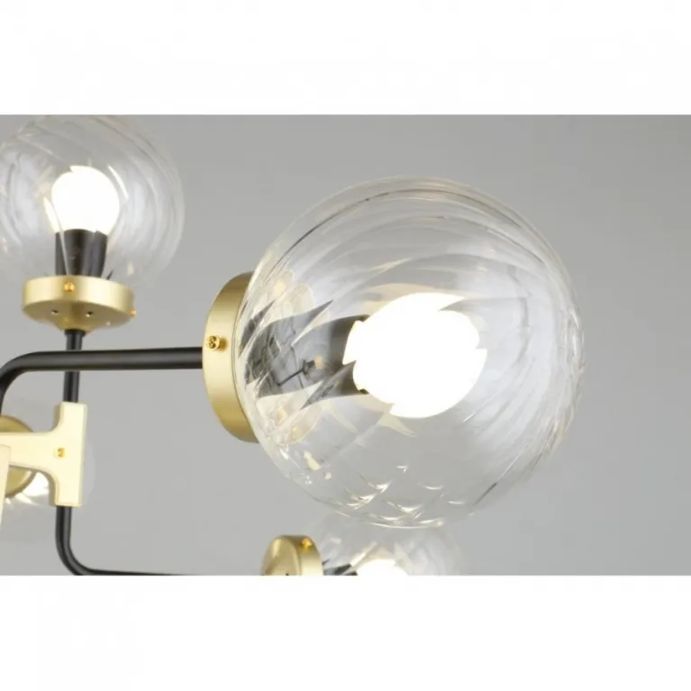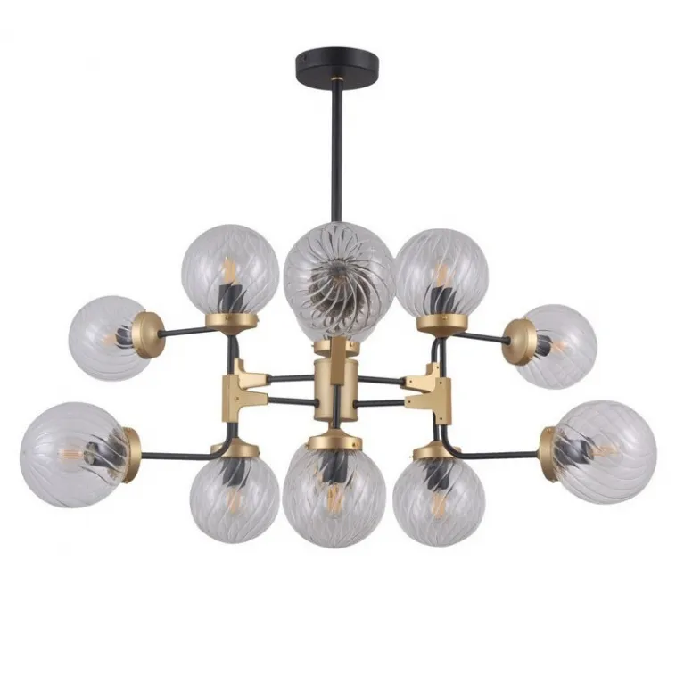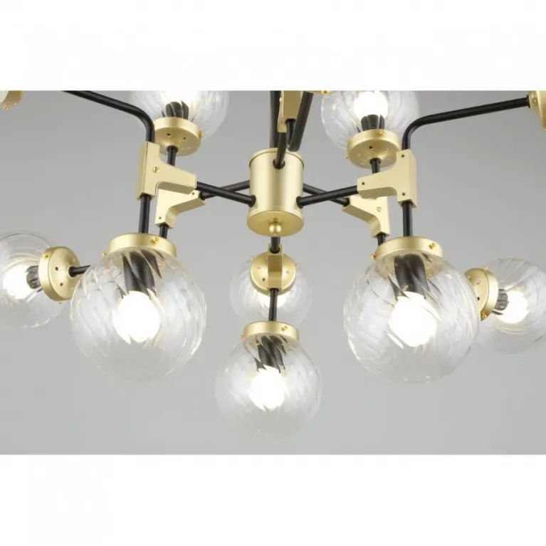 Люстра оснащена 12 лампами, что обеспечивает яркое и равномерное освещение пространства. Она выполнена в стильном черном цвете и изготовлена из прочного металла, что гарантирует долговечность и качество изделия. Тип цоколя E14 позволяет использовать лампы различных видов, включая энергосберегающие и светодиодные.