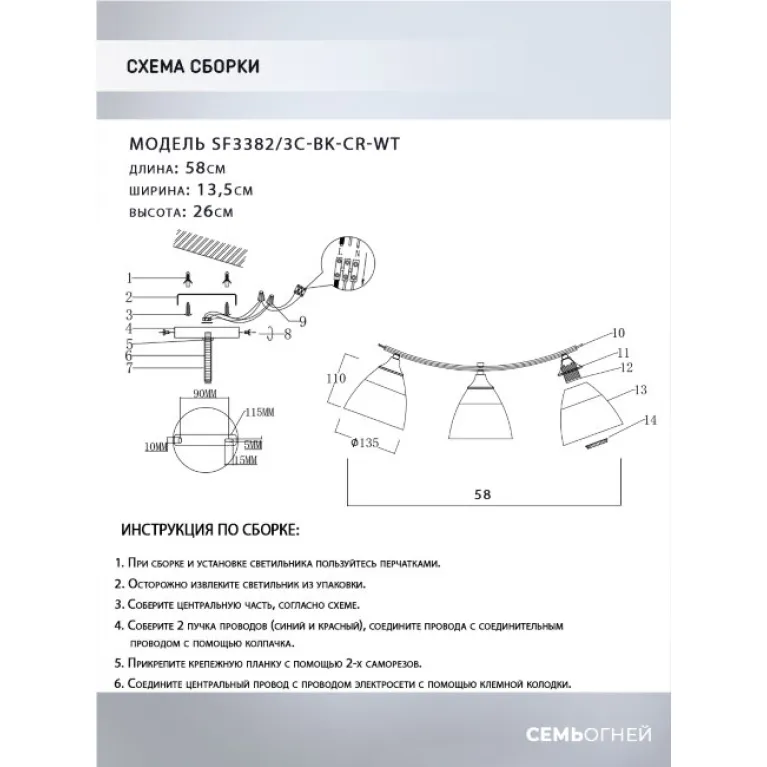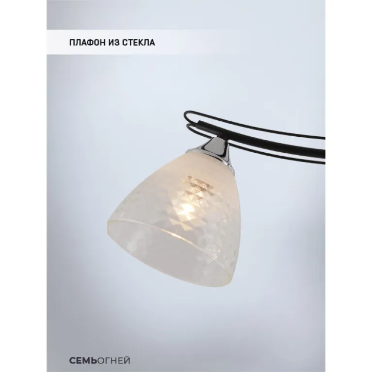 Преобладающий цвет плафонов: Белый, арматуры: Черный; материал изготовления арматуры: Металл, размеры, мм: длина 580 / ширина 135 / высота 260 Общая мощность – 180 Ватт, а максимальная площадь освещения до 9 м2. Основной тип ламп, предусмотренный производителем: Накаливания с цоколем E27. В зависимости от предпочтений можно использовать лампы теплового, холодного или нейтрального света, за исключением люстр с типом цоколя LED.