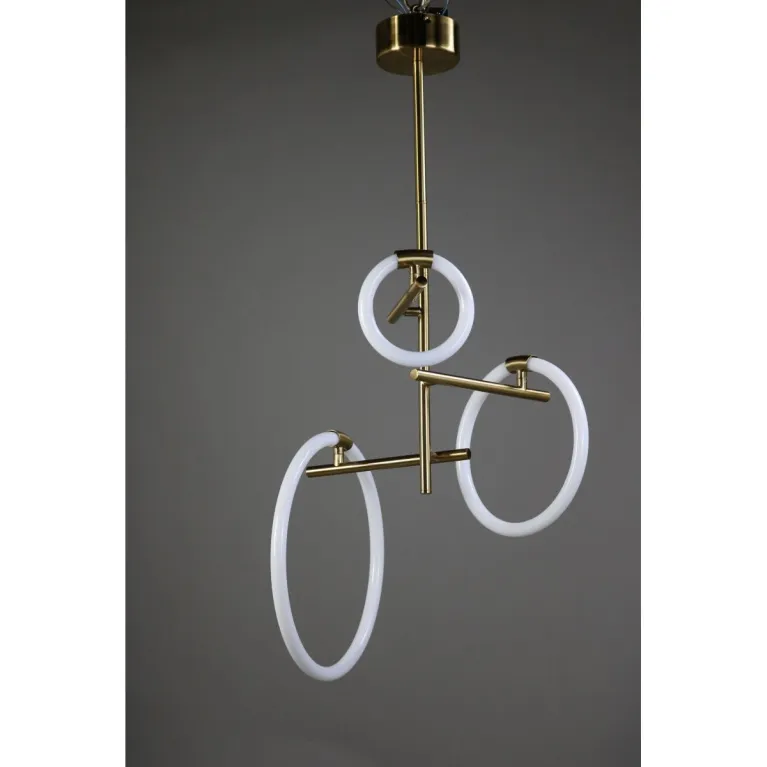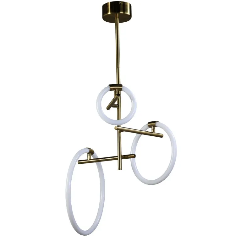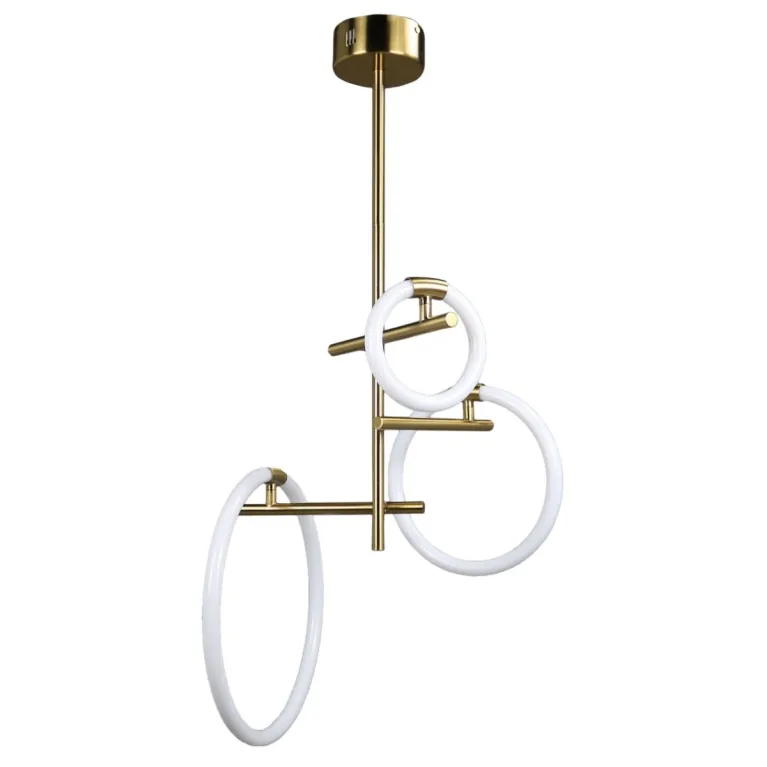 Преобладающий цвет плафонов: Белый, арматуры: Латунь; материал изготовления арматуры: Металл, размеры, мм: / высота 1150 / диаметр 510. Общая мощность – 45 Ватт, а максимальная площадь освещения до 15 м2. Основной тип ламп, предусмотренный производителем: Светодиодная с цоколем LED. В зависимости от предпочтений можно использовать лампы теплового, холодного или нейтрального света, за исключением люстр с типом цоколя LED.