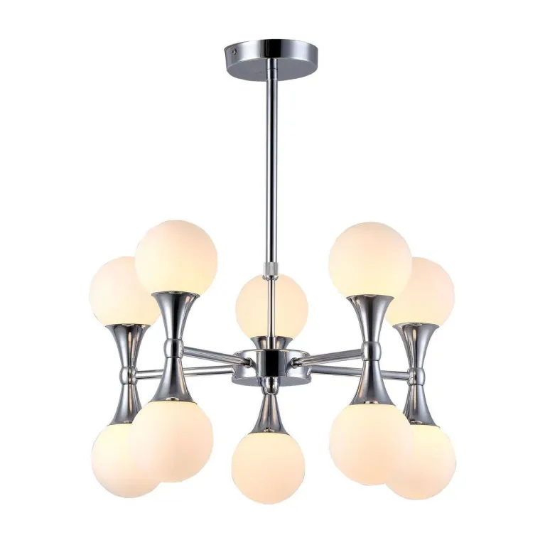 Люстра оснащена десятью источниками света с цоколем E14, что позволяет использовать лампы различного типа, в том числе энергосберегающие и светодиодные. Суммарная мощность ламп составляет 400 Вт, что обеспечивает яркое и равномерное освещение пространства.