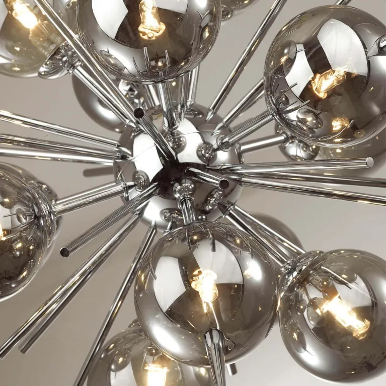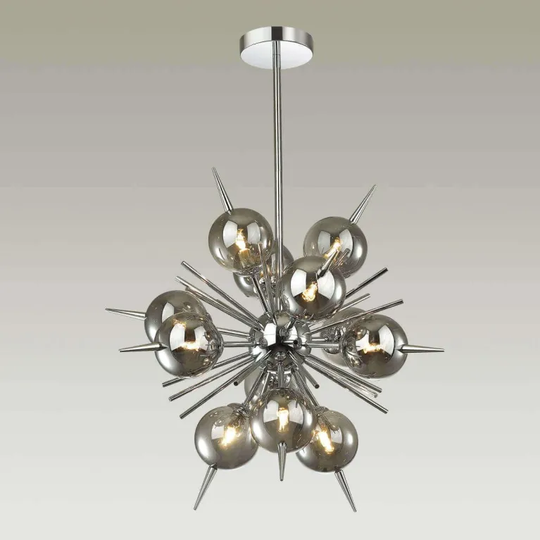 Люстра оснащена 12 источниками света с цоколем E14, что позволяет использовать различные типы ламп, включая энергосберегающие и светодиодные. Суммарная мощность ламп — 720 Вт, что обеспечивает яркое и равномерное освещение пространства.