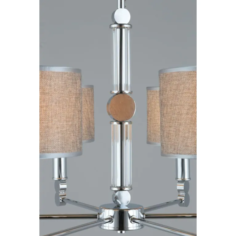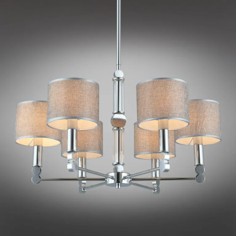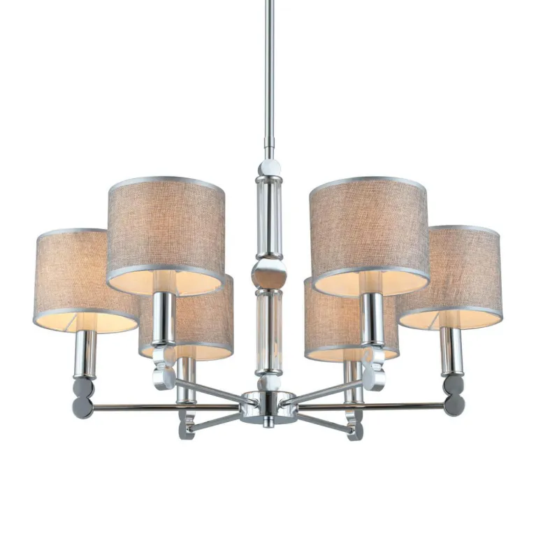 Люстра оснащена шестью лампами, которые обеспечивают яркое и равномерное освещение. Она идеально подходит для комнат с высокими потолками, так как ее высота составляет 1200 мм. Основание выполнено из прочного металла, что гарантирует долговечность и надежность конструкции.