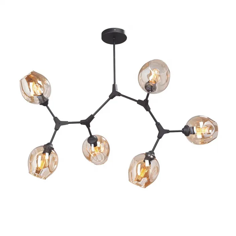 Люстра оснащена шестью лампами, что обеспечивает яркое и равномерное освещение пространства. Она выполнена в изысканном черном цвете, который прекрасно гармонирует с различными стилями интерьера. Основание из прочного металла гарантирует долговечность и надежность конструкции.