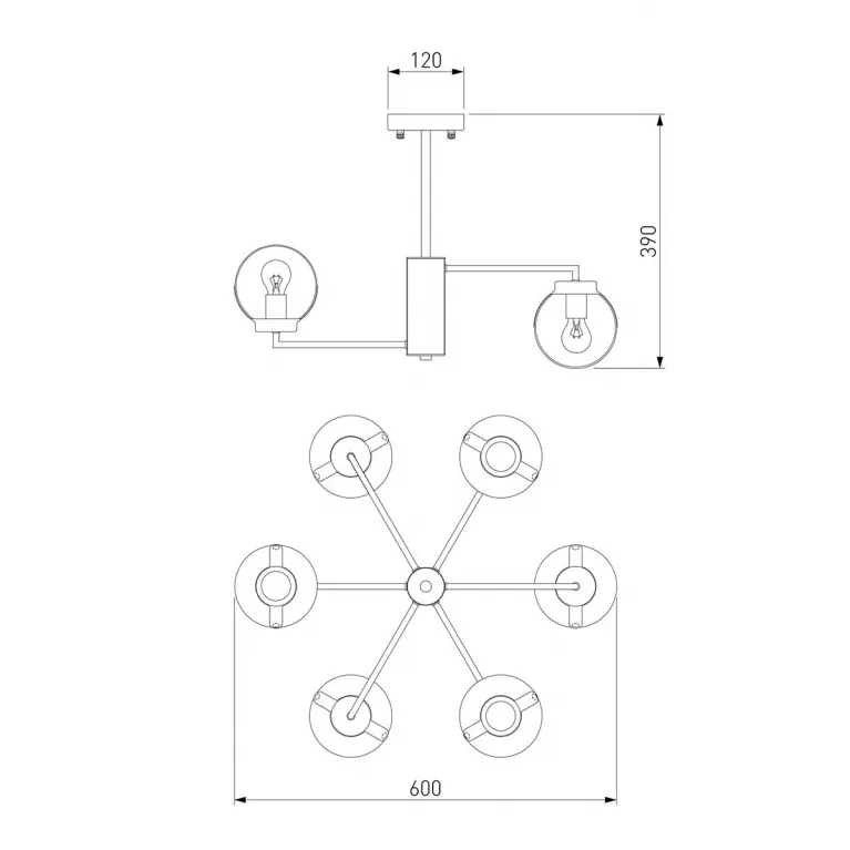 Люстра оснащена шестью лампами, что обеспечивает яркое и равномерное освещение пространства. Патрон E27 позволяет использовать лампы мощностью до 40 Вт, что гарантирует достаточный уровень света и создает комфортную атмосферу в помещении. Диаметр люстры составляет 520 мм, а высота — 400 мм, делая её оптимальным выбором для комнат со стандартными потолками.
