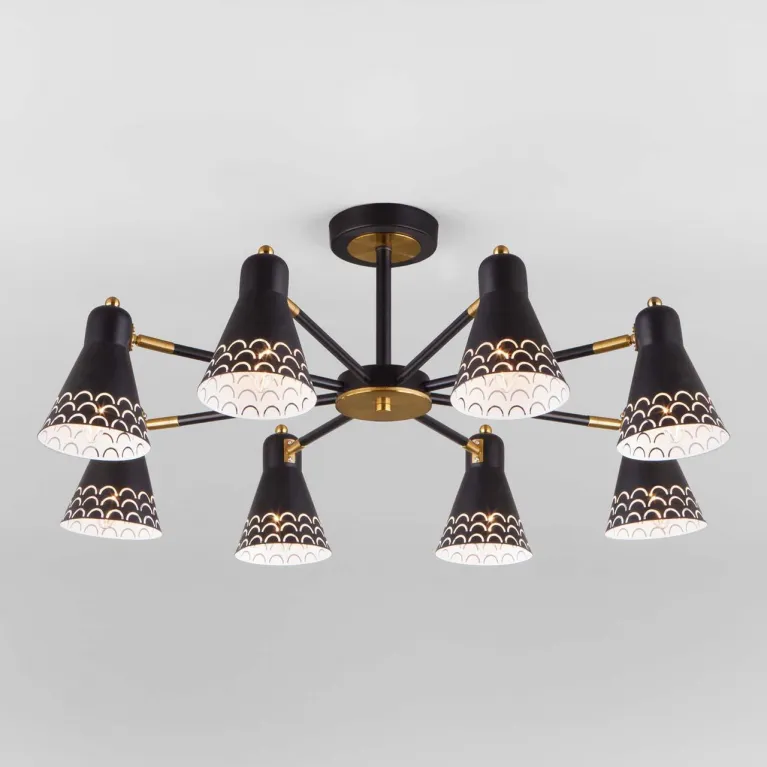 Потолочная люстра Eurosvet Tria 70100/8 черный — это элегантное и стильное решение для вашего интерьера. Этот светильник, выполненный в современном дизайне и черном цвете, станет ярким акцентом в гостиной, столовой или спальне.
