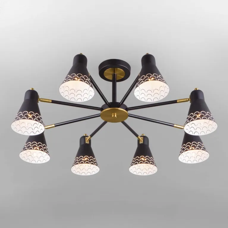 Люстра оснащена восемью источниками света, что обеспечивает яркое и равномерное освещение пространства. Патрон E27 позволяет использовать лампы мощностью до 40 Вт, что гарантирует достаточный уровень света и создает уютную атмосферу в помещении.