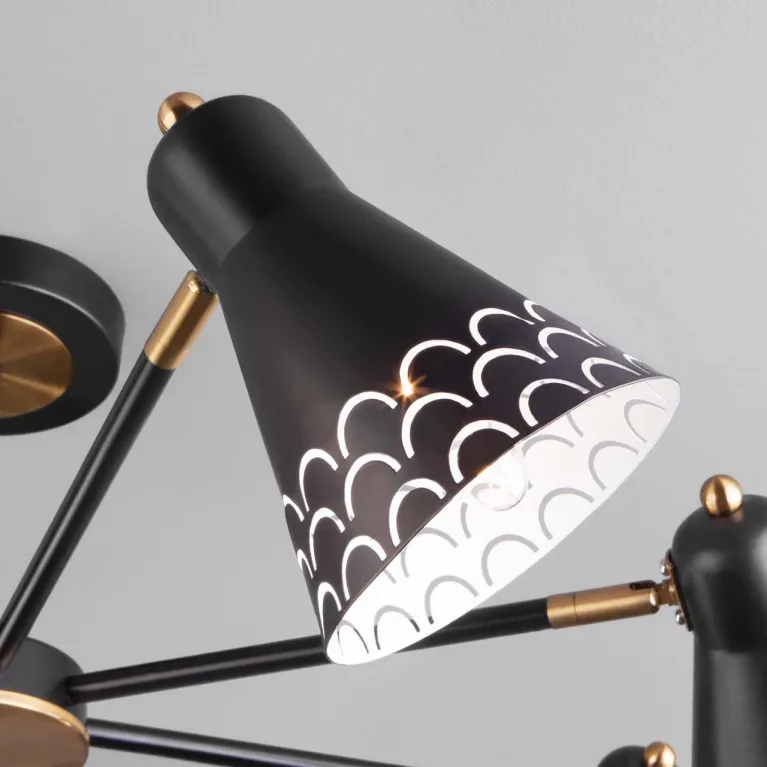 Изготовленная из прочного металла, эта люстра отличается долговечностью и надежностью. Легкое крепление на потолок делает её удобной для установки в различных комнатах, а компактные размеры позволяют разместить её в помещениях с низкими потолками.