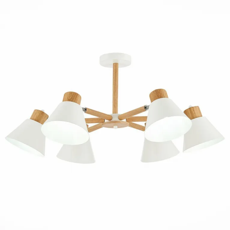 Люстра оснащена шестью источниками света с цоколем E14, что позволяет использовать различные типы ламп, включая энергосберегающие и светодиодные. Такое решение обеспечивает яркое и качественное освещение, подходящее для различных задач и настроений.