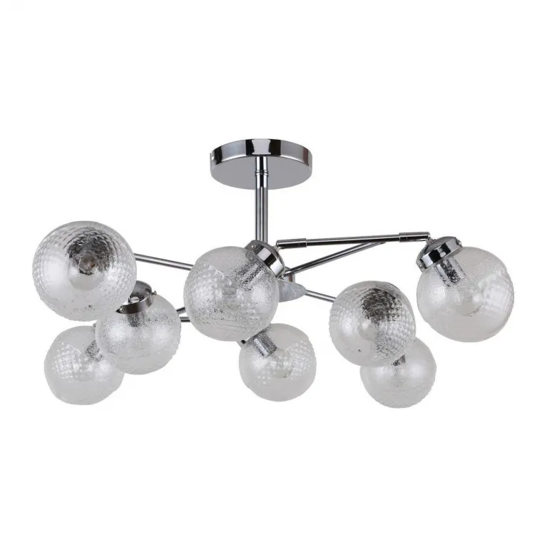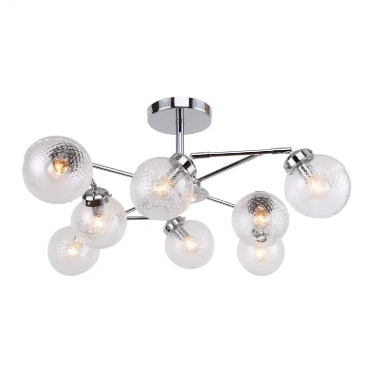 Люстра оснащена восемью лампами, что обеспечивает яркое и равномерное освещение. Она идеально подходит для гостиной, столовой или спальни, создавая комфортную атмосферу в вашем доме. Основание выполнено из прочного металла, что гарантирует долговечность и надежность конструкции.