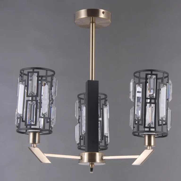 Люстра оснащена тремя источниками света с цоколем E14, что позволяет использовать различные типы ламп, включая энергосберегающие и светодиодные. Такое решение обеспечивает яркое и качественное освещение, подходящее для различных задач и настроений.