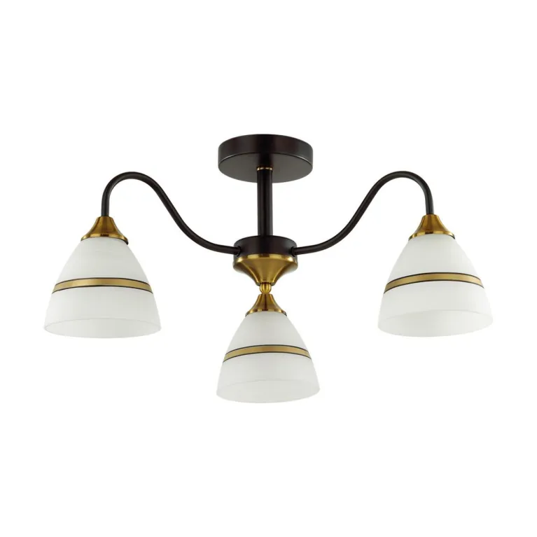 Светильник имеет традиционную конструкцию с центральным расположением ламп и направленными вниз плафонами, что обеспечивает максимальную эффективность освещения и создает уютную атмосферу в помещении. Патрон E14 позволяет легко заменять лампы при необходимости.