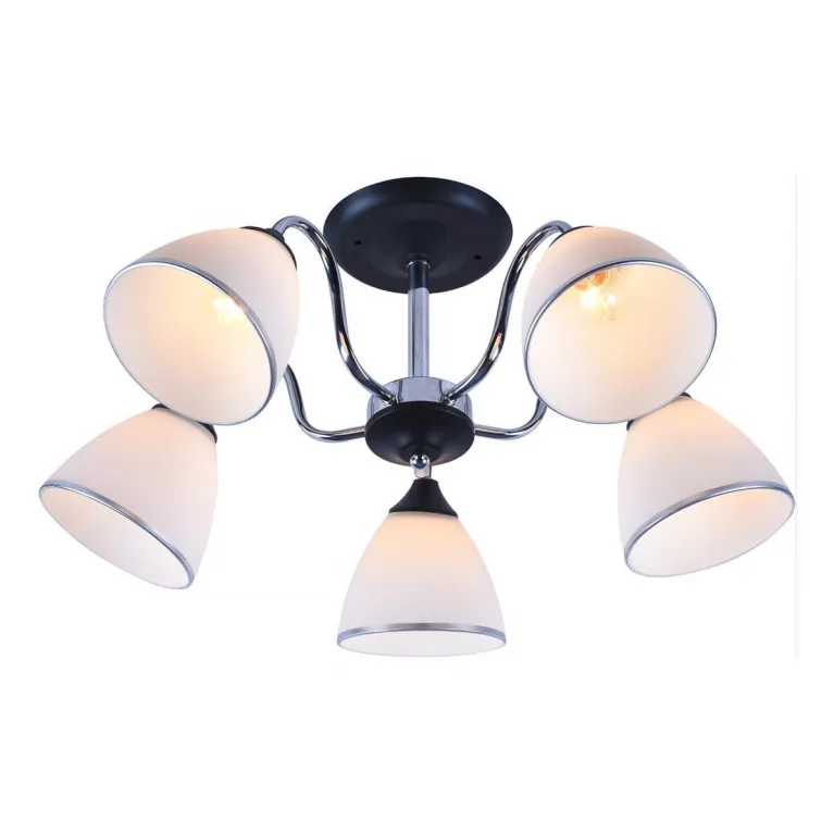 Люстра оснащена тремя лампами типа E27, что позволяет использовать различные виды ламп - от традиционных ламп накаливания до современных энергосберегающих и светодиодных. Суммарная мощность ламп составляет 60 Вт, что обеспечивает достаточное освещение для просторных комнат.