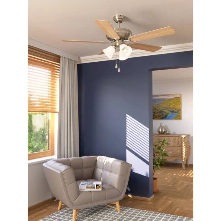 Потолочная люстра-вентилятор Eglo 35077 в Нижнем Новгороде австрийского производителя Eglo отлично подходит для интерьеров в современном стиле, рекомендуемое помещение: Для офиса.
