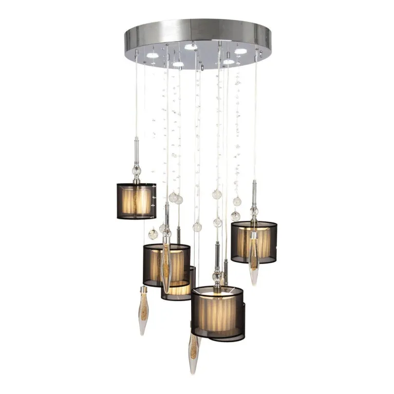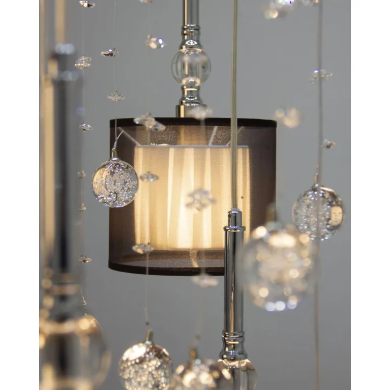 Диаметр люстры составляет 720 мм, а высота - 450 мм, что делает её оптимальным выбором для помещений с высокими потолками. Благодаря универсальному хромированному покрытию, она легко впишется в любой современный интерьер, добавив ему стильности и утонченности.