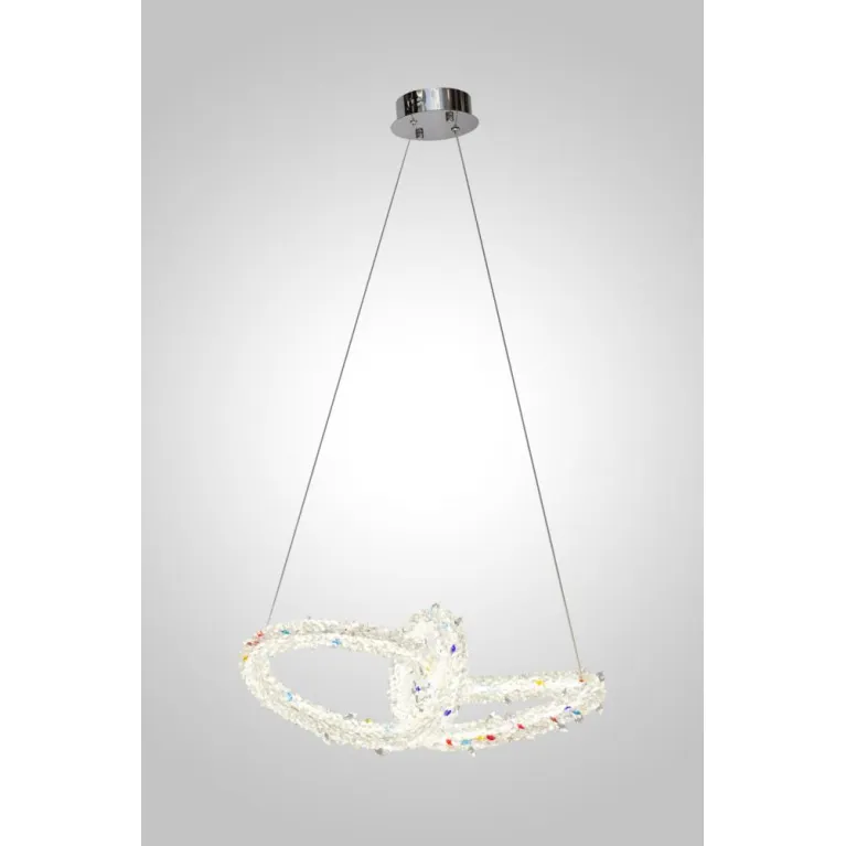 Преобладающий цвет плафонов: Разноцветный, арматуры: Хром; материал изготовления арматуры: Металл, размеры, мм: / диаметр 600. Общая мощность – Ватт. Основной тип ламп, предусмотренный производителем: с цоколем В зависимости от предпочтений можно использовать лампы теплового, холодного или нейтрального света, за исключением люстр с типом цоколя LED.