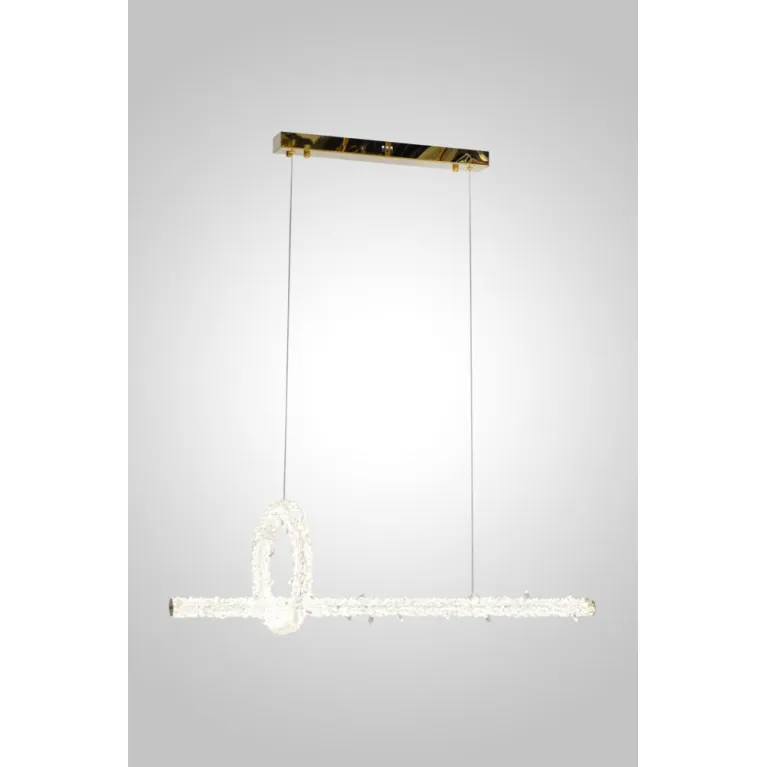 Преобладающий цвет плафонов: Прозрачный, арматуры: Золото; материал изготовления арматуры: Металл, размеры, мм: длина 1000 / диаметр 300. Общая мощность – Ватт. Основной тип ламп, предусмотренный производителем: с цоколем В зависимости от предпочтений можно использовать лампы теплового, холодного или нейтрального света, за исключением люстр с типом цоколя LED.
