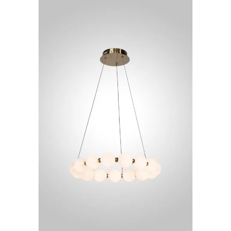 Преобладающий цвет плафонов: Белый, арматуры: Золото; материал изготовления арматуры: Металл, размеры, мм: / высота 1800 / диаметр 500. Общая мощность – 35 Ватт, а максимальная площадь освещения до 8 м2. Основной тип ламп, предусмотренный производителем: Светодиодная с цоколем LED. В зависимости от предпочтений можно использовать лампы теплового, холодного или нейтрального света, за исключением люстр с типом цоколя LED.