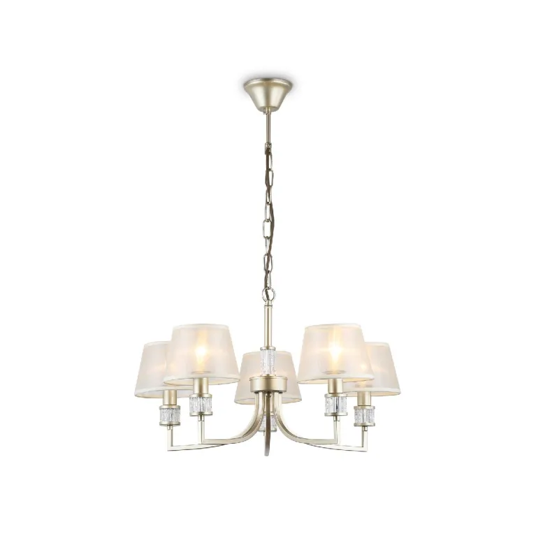 Преобладающий цвет плафонов: Золото, арматуры: Золото; материал изготовления арматуры: Металл, размеры, мм: / высота 740 / диаметр 620. Общая мощность – 200 Ватт, а максимальная площадь освещения до 20 м2. Основной тип ламп, предусмотренный производителем: Накаливания с цоколем E14. В зависимости от предпочтений можно использовать лампы теплового, холодного или нейтрального света, за исключением люстр с типом цоколя LED.